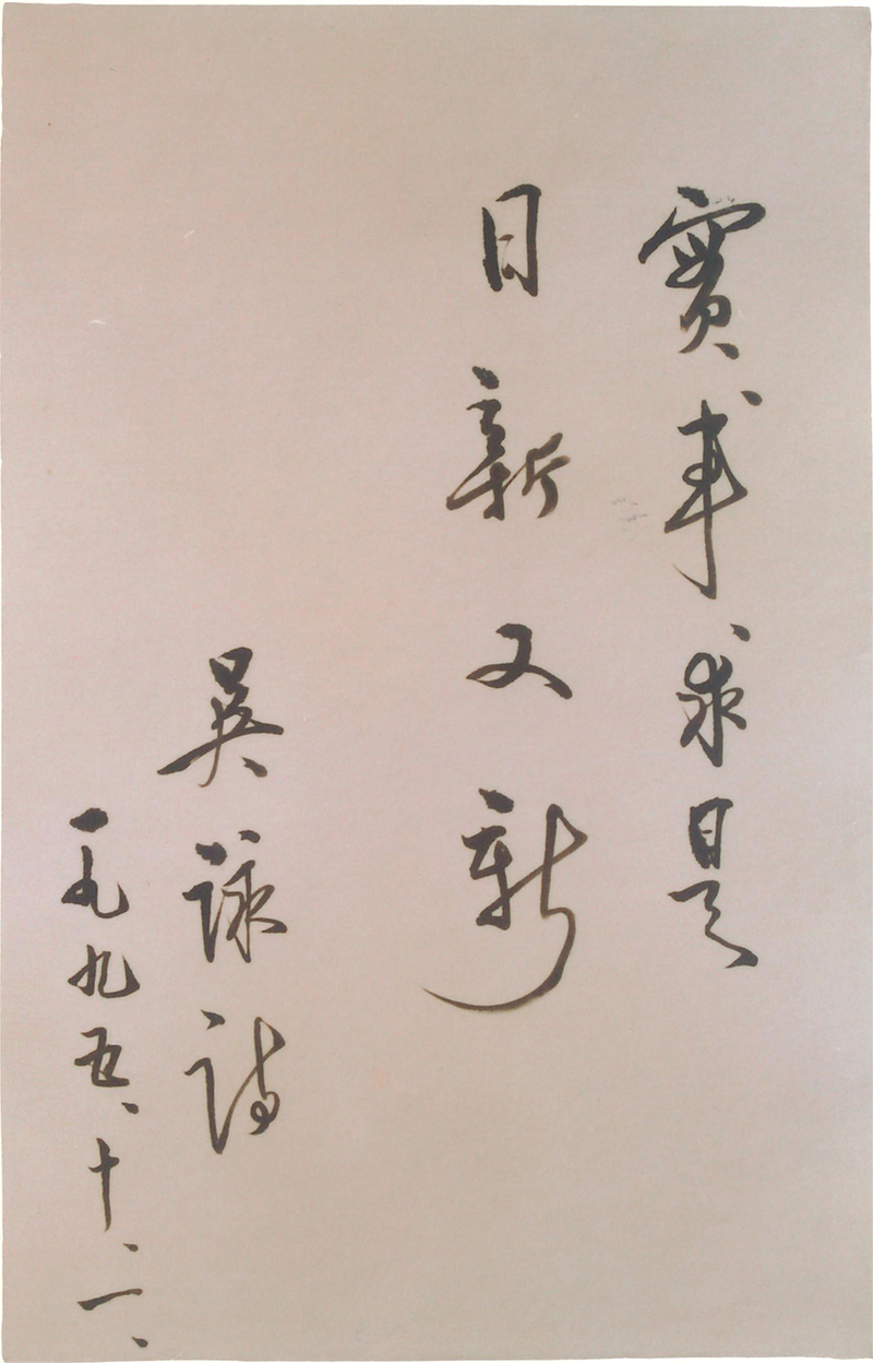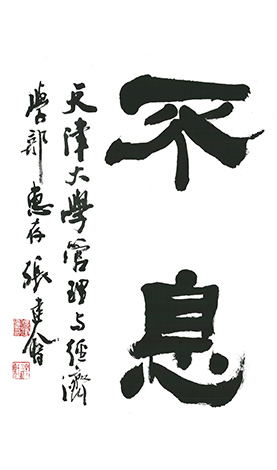 1995年 曾任校长吴咏诗为经管学部题词寄语“实事求是,日新又新”