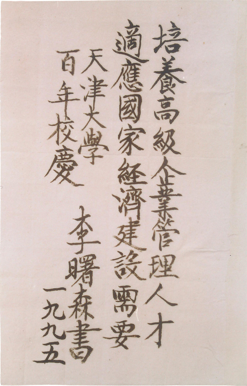1995年 曾任校长李曙森为经管学部题词寄语“培养高级企业管理人才,适应国家经济建设需要”