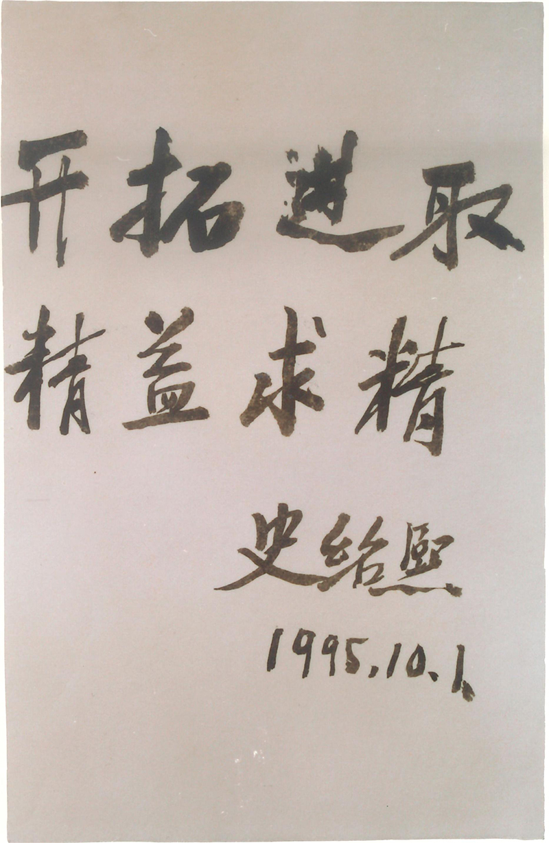 1995年 曾任校长史绍熙为经管学部题词寄语“开拓进取,精益求精”