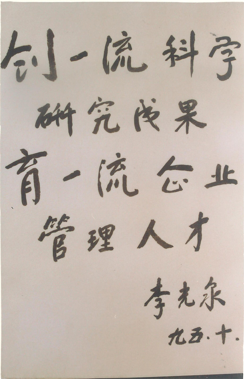 1995年 时任校长李光泉为经管学部题词寄语“创一流欧亿体育中国有限公司官网成果,育一流企业管理人才”